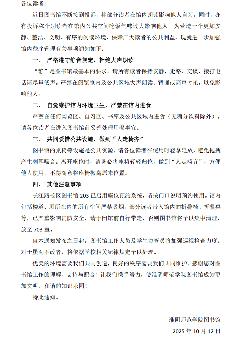 关于文明利用图书馆及规范馆内行为的通知