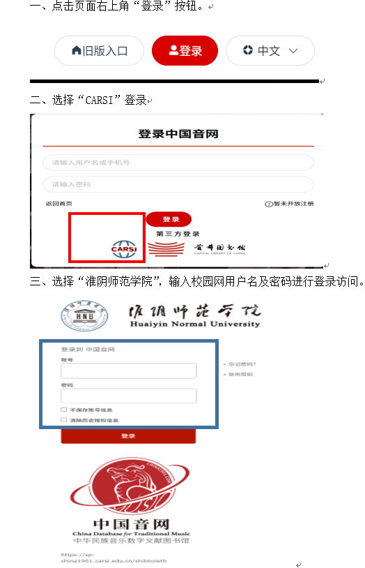 图书馆主页——资源——网络资源——中国音网,或直接输入网址:https://www.china1901.com/#/,通过CARSI访问方式进行访问。