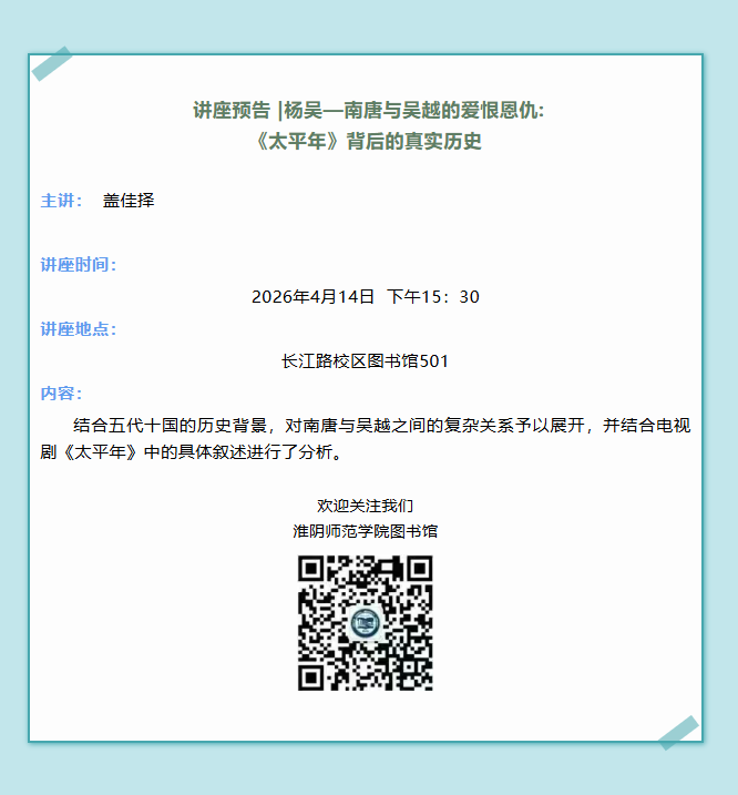淮师2026读书节|讲座:杨吴-南唐与吴越的爱恨恩仇:《太平年》背后的真实历史