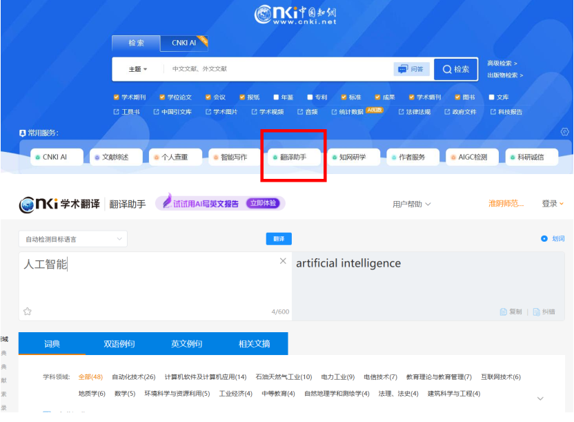 通过CNKI翻译助手,能够获取较专业的词汇翻译和文本翻译,并可以查看与词汇、短语翻译结果相关的例句、文摘、文献。