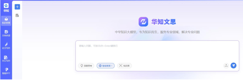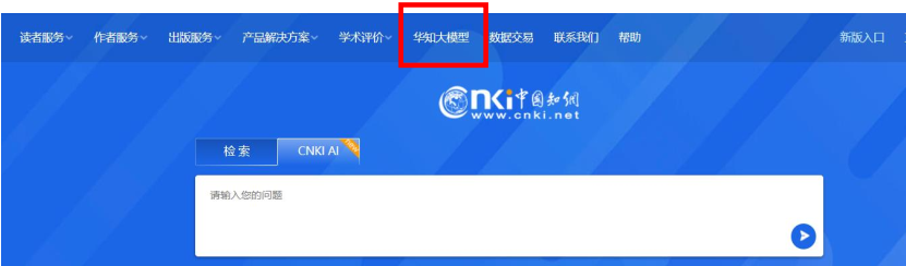 中国知网旧版首页,点击华知大模型,进入AI问答页面,输入需要进行解决的问题场景,利用知网AI问答进行互动问答。