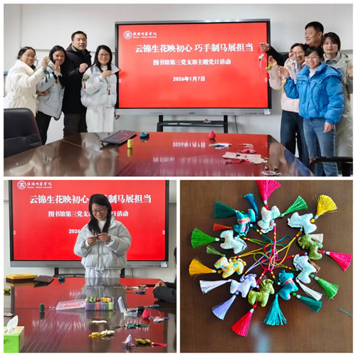 为深入推进党史学习教育常态化长效化,传承中华优秀传统文化,坚定文化自信, 2026年1月7日,图书馆第三党支部精心策划并组织了以“云锦生花映初心 巧手制马展担当”为主题的党日活动。活动将非遗技艺体验与党性教育深度融合,取得了良好成效。